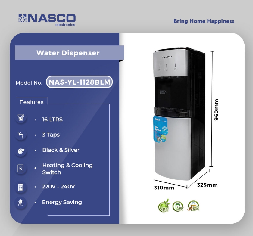 Enjoy total convenience and hydration control with the Nasco 16Ltrs 3-Tap Water Dispenser—a stylish and efficient appliance perfect for homes, offices, schools, and commercial spaces. With three separate taps for hot, cold, and room-temperature water, this dispenser caters to all your drinking and preparation needs at any time of day.