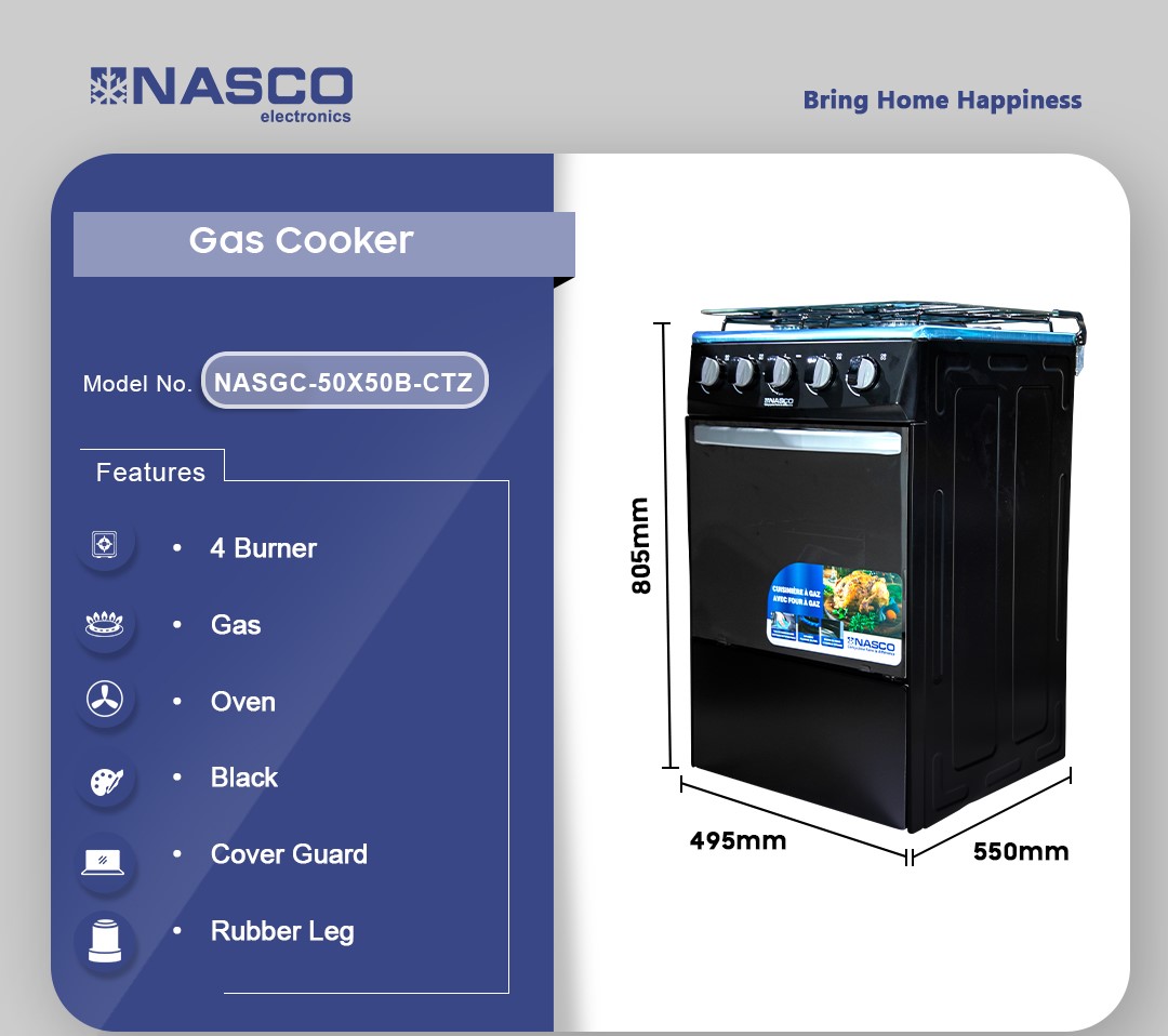 NASCO 4 BURNER GAS COOKER OVEN NASGC-50X50B-CTZ – Versatile & Efficient Cooking Experience