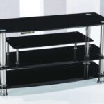 Supported by a durable chrome frame with polished feet, this TV stand is both sturdy and visually striking. The gleaming chrome finish contrasts beautifully with the dark glass, creating a balanced, modern look. Built for versatility and durability, this stand not only complements your home’s aesthetic but provides a reliable foundation for your entertainment setup. With its sleek profile and functional shelving, it’s the ideal addition to a stylish and organized living area.